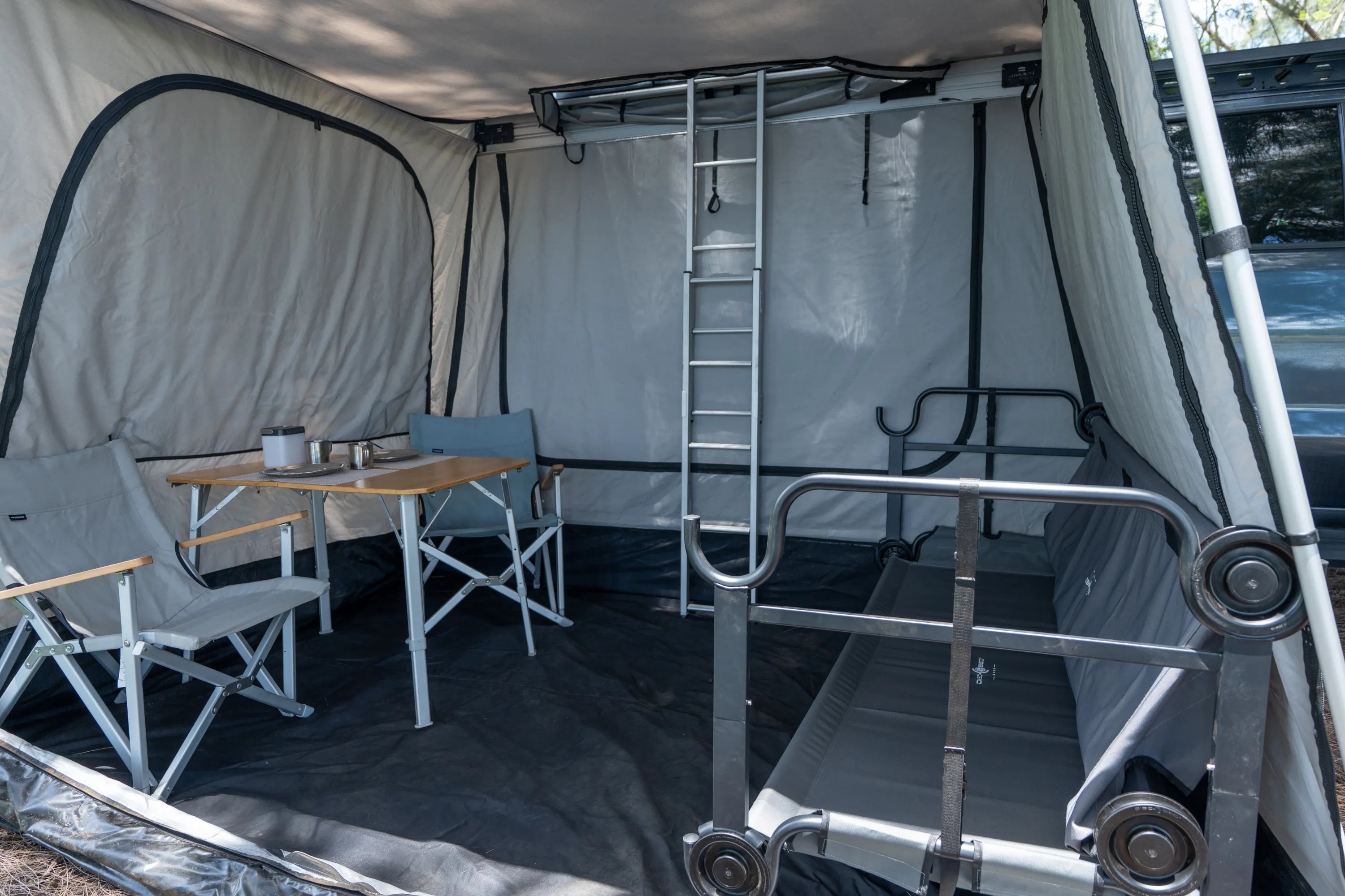 • It can be used independently of the rooftop tent, although they match perfectly with the tunnel and the tunnel hole.