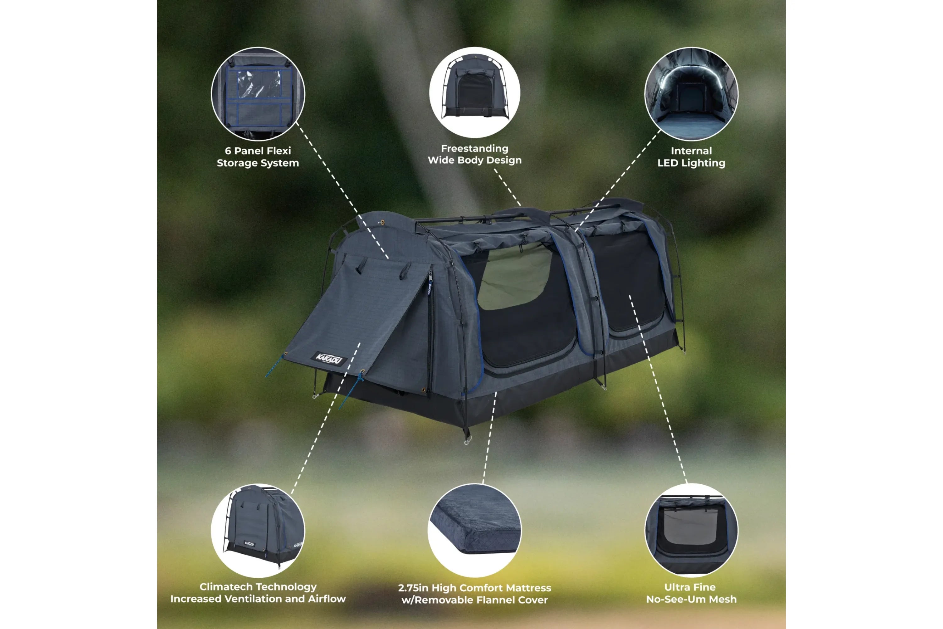 - Six-Panel Flexi Storage System - Keeps gear off the mattress for more sleeping space and organization