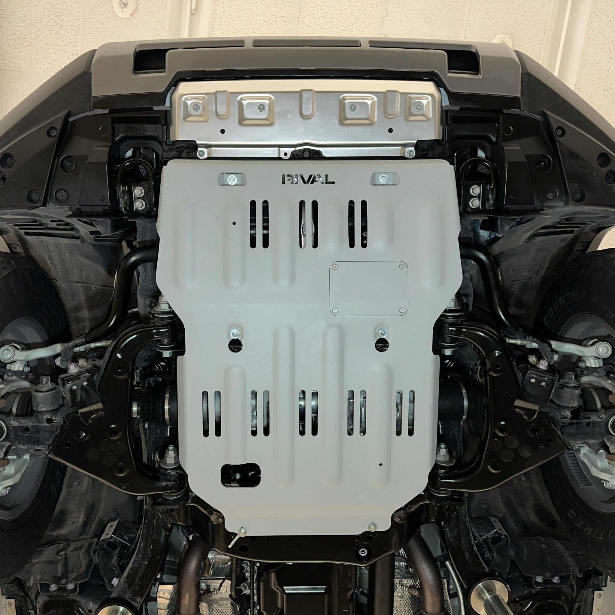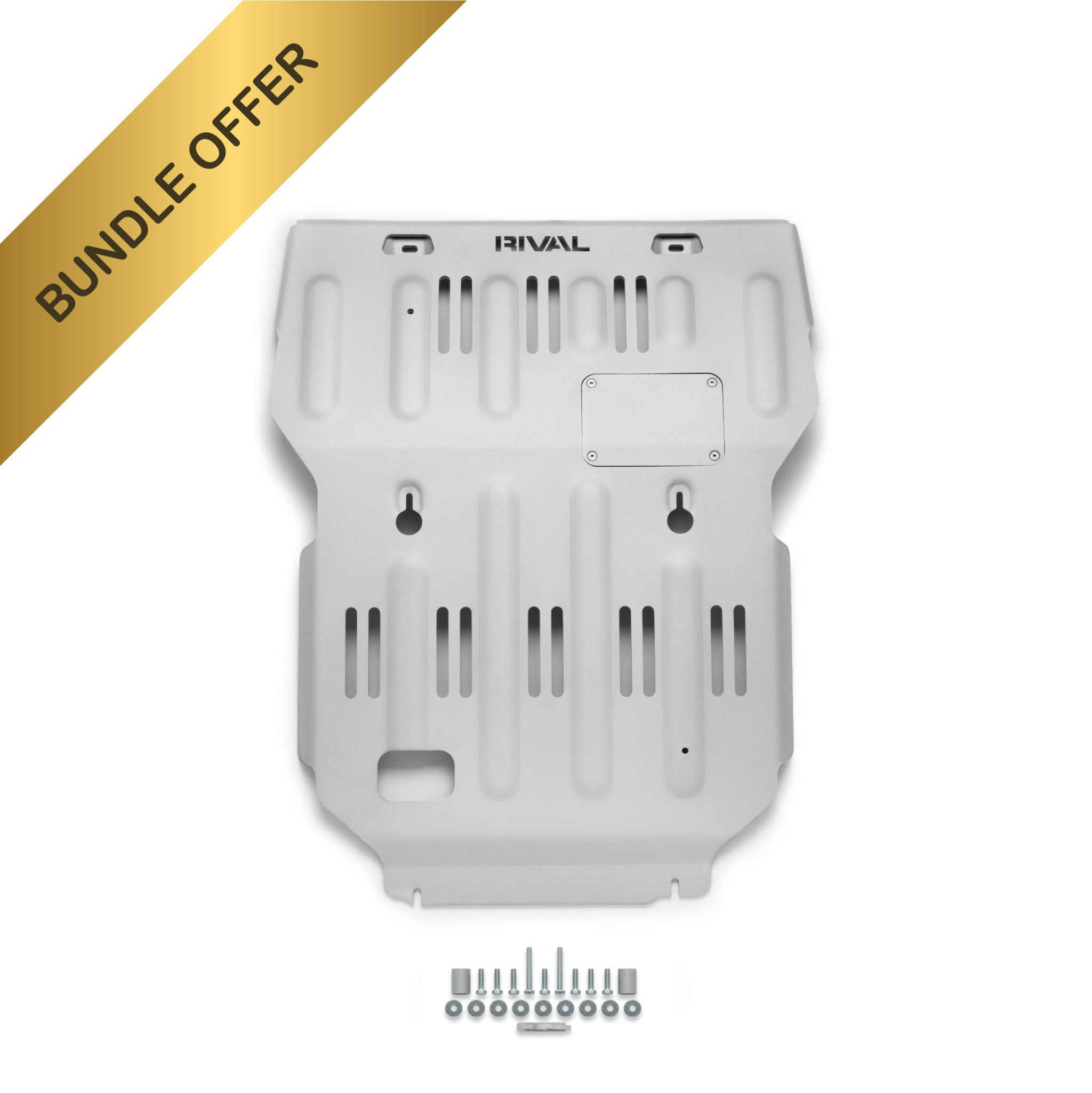The high-quality laser cut RIVAL skid plates are made from deep stamped 1/4-inch thick aluminum alloy. This durable underbody armor offers both a lightweight and high strength solution for underbody protection. Combined with a no drill installation, it’s an easy choice to protect underbody of your vehicle from rocks, logs and scrapes. Being an extremely corrosion resistant material aluminum will not rust even if the surface coating becomes gouged or scratched. Get this great underbody protection along with non-corrosive features of aluminum.