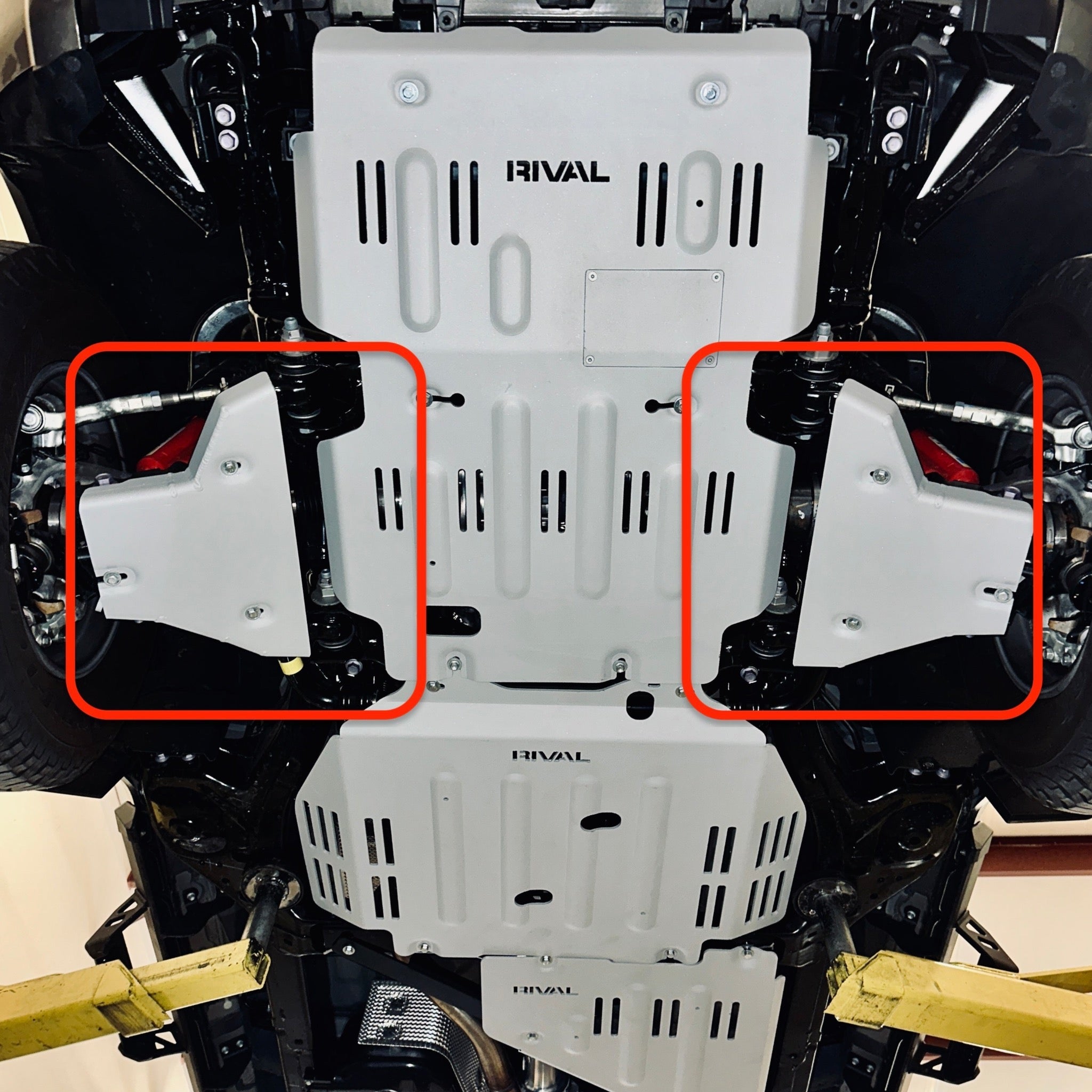 The high-quality laser cut RIVAL skid plates are made from deep stamped 1/4-inch thick aluminum alloy. This durable underbody armor offers both a lightweight and high strength solution for underbody protection. Combined with a no drill installation, it’s an easy choice to protect underbody of your vehicle from rocks, logs and scrapes. Being an extremely corrosion resistant material aluminum will not rust even if the surface coating becomes gouged or scratched.