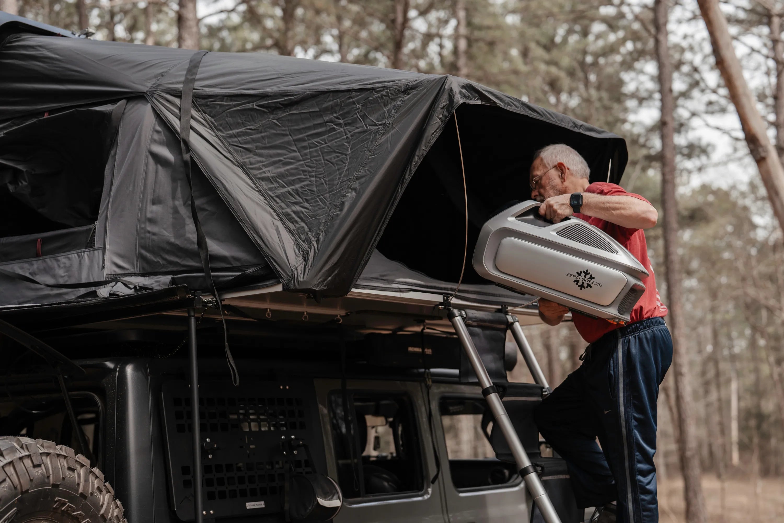 The Mark 3 is ZERO BREEZE's latest portable air conditioner, boasting a cooling capacity of 5,280 BTU. Weighing just under 22 pounds, it features a multi-function climate control system that allows you to set and maintain temperatures between 61°F and 88°F, suitable for spaces ranging from 100 to 150 square feet. Whether camping or living on the move in a van, trailer, or tiny house, the Mark 3 offers unmatched convenience for all your climate control needs.Highlights