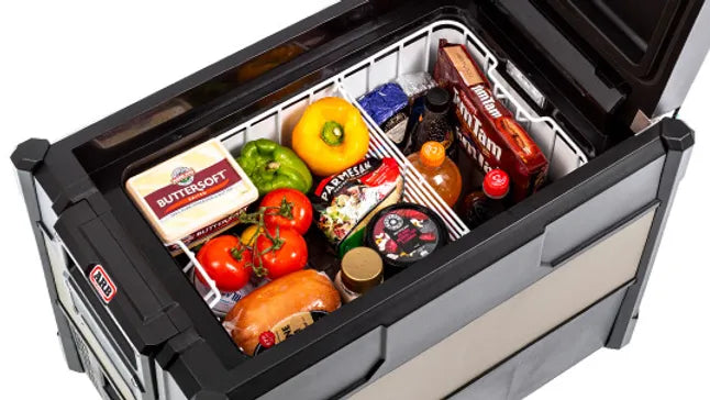 - The perfect fridge/freezer size for a couple or a small family heading on a long weekend away. Featuring a front opening lid unique to the 47qt model. (non-reversible)
