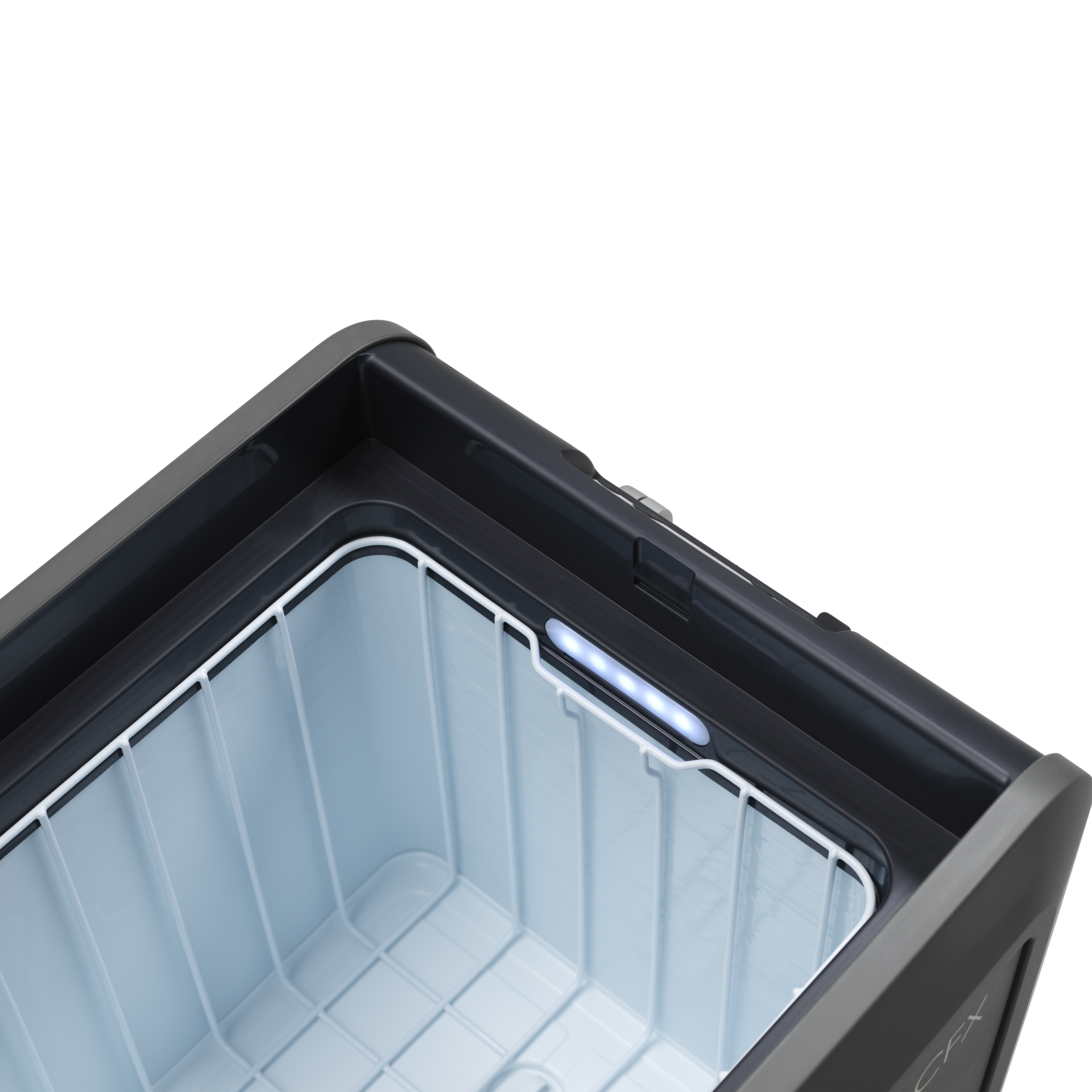 Our most compact and portable CFX5 25 compressor cooler holds 40 x 330ml cans & 5 x 1,5L bottles and can spaciously fit in the back of your car or ride along in the back seat – great for day trips, duos, or going solo. Highly efficient Vacuum Insulated Panels deliver outstanding insulation for maximum energy efficiency, the lid seals tight, and the compressor offers powerful and energy efficient cooling. Control it with our smartphone app and stay adventure ready.