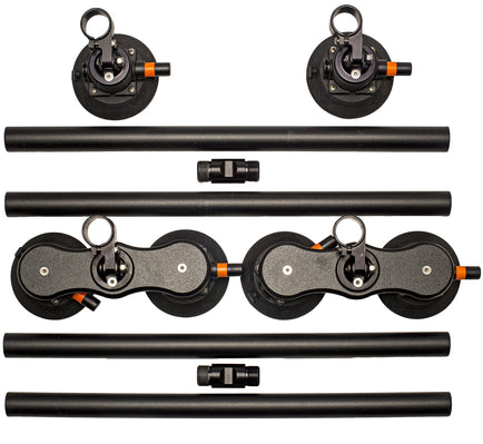 Our one-size-fits-all roof rack system is dressed in black so it's ready for a night on the town or a stealth mission. Screw-together cross bars allow for compact storage when needed. The Monkey Bars feature round black powder-coated aluminum cross bars; choose between the standard 48" cross bars and the extended 60" cross bars. Either version allows you to easily attach accessories for activities such as kayaking, skiing, surfing and paddle boarding, biking, or hauling cargo. Have a wide or narrow roof? No worries, the vacuum mounts can be moved to any position on the bar to ensure a perfect fit for any vehicle.